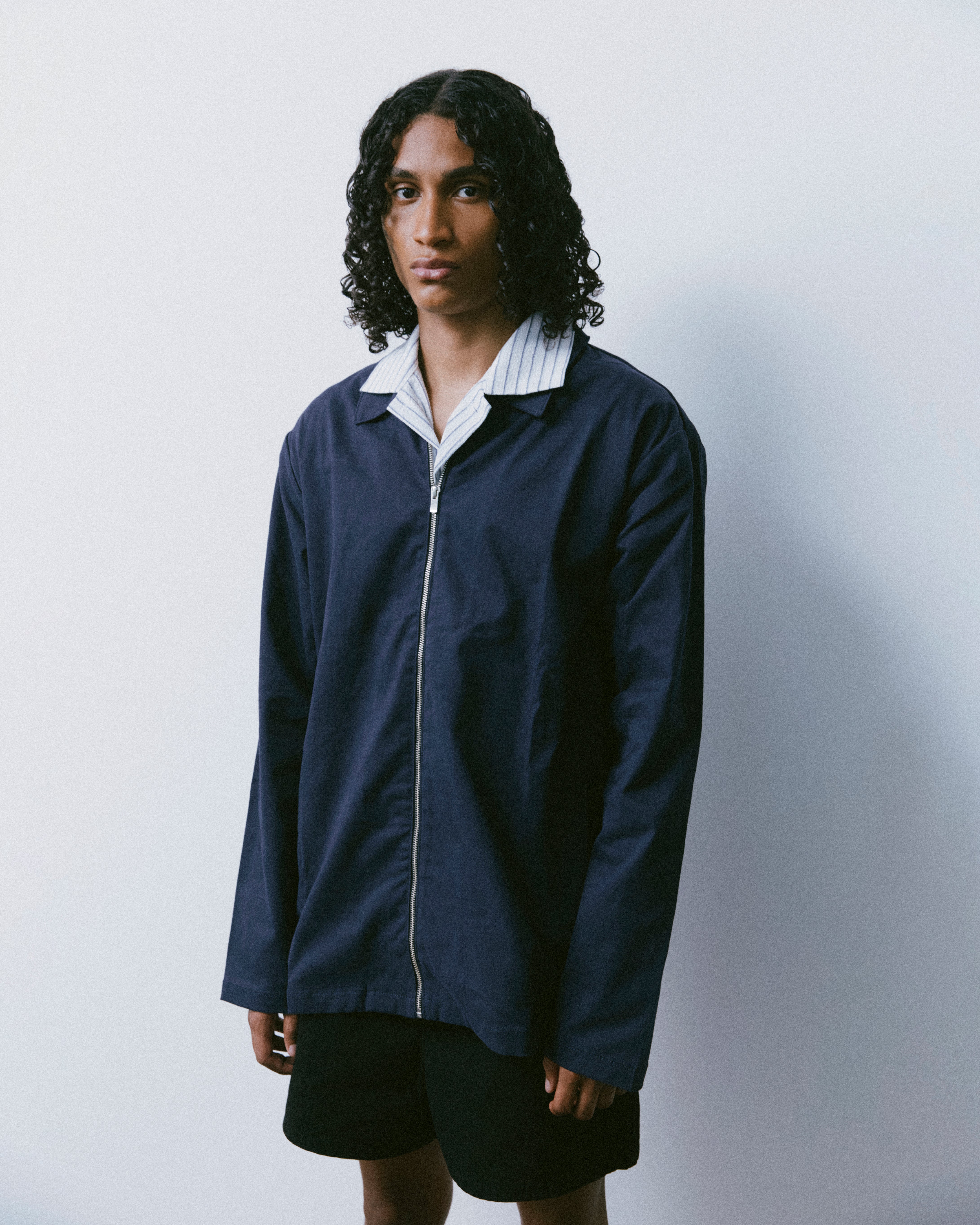 Relaxed fit with point collar, full zip closure and welt pockets, finished with The Savage Report branding on the sideseam.